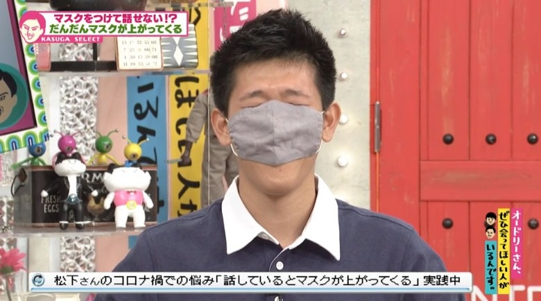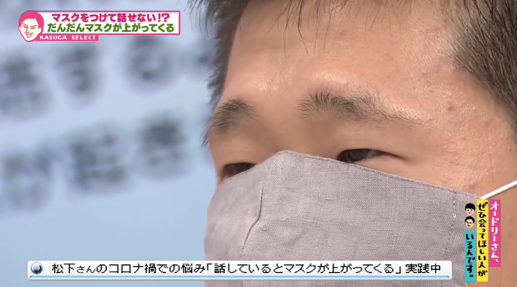 その悩みは、マスクをつけて話をしていたら目が隠れるくらいまでマスクが上がってくること。松下さんの悩みに神妙な顔つきで相槌をいれる若林。一方の春日は、「マスクが?そんなことある?」と疑いのまなざしを向けた。