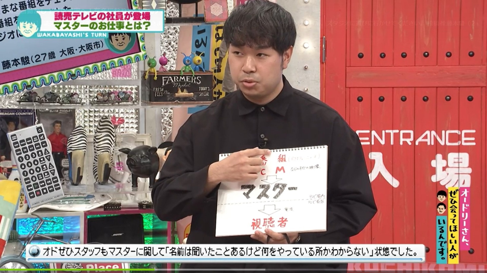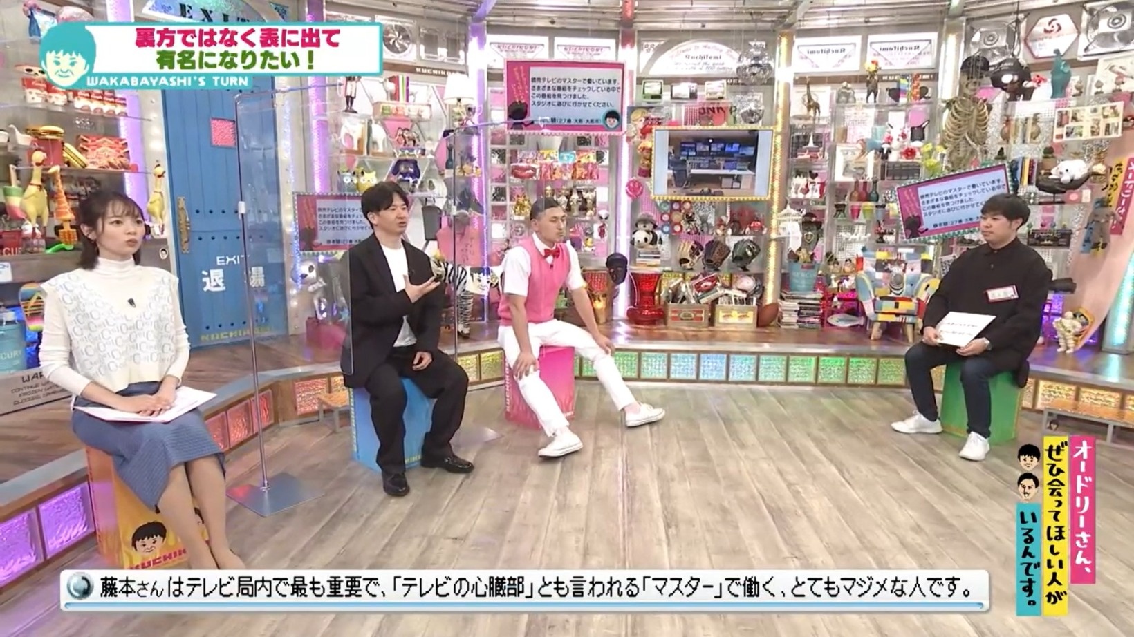 2022年8月8日の放送分では、「読売テレビのマスターで働いています」という藤本駿さんが登場。仕事の紹介に始まり、特技の高速目動かしの披露、将来の夢まで語り出すマイペースな藤本さん。スタジオには困惑と笑いがあふれる展開となった。