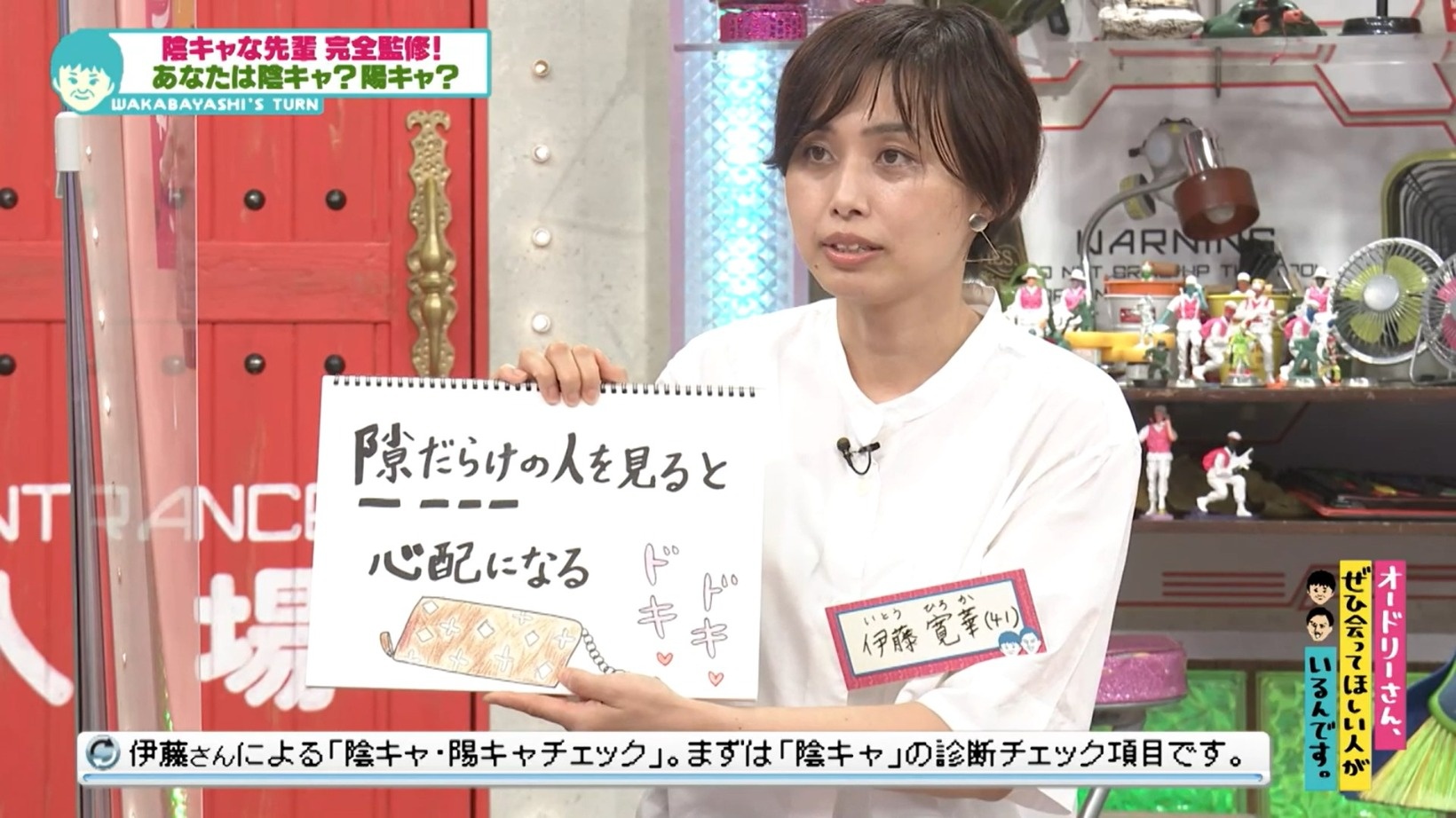 若林を先回りする伊藤さんのペースにスタジオは大爆笑!伊藤さん独自の「陰キャ・陽キャチェック」はまだまだ続く。