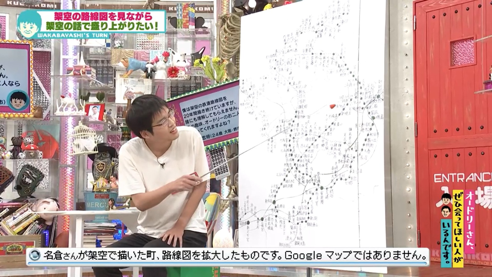 2023年2月13日の放送分では、「架空の鉄道路線図を20年間描き続けていますが、誰にも理解してもらえません」という、名倉宏明さんが出演。聞けば聞くほど、架空の路線図から深いエピソードが飛び出し、スタジオは盛り上がっていく!