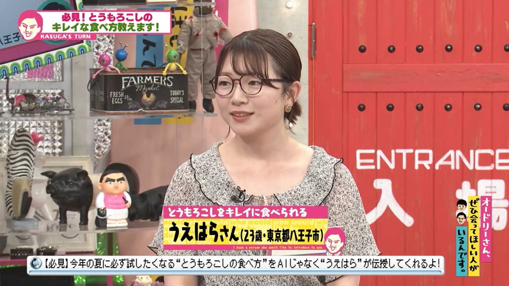 2023年2月13日の放送分では、「とうもろこしをキレイに食べられます」という、うえはらさんが出演。トーク番組なのに、全員でただただ、とうもろこしを食べる展開になるのだった。