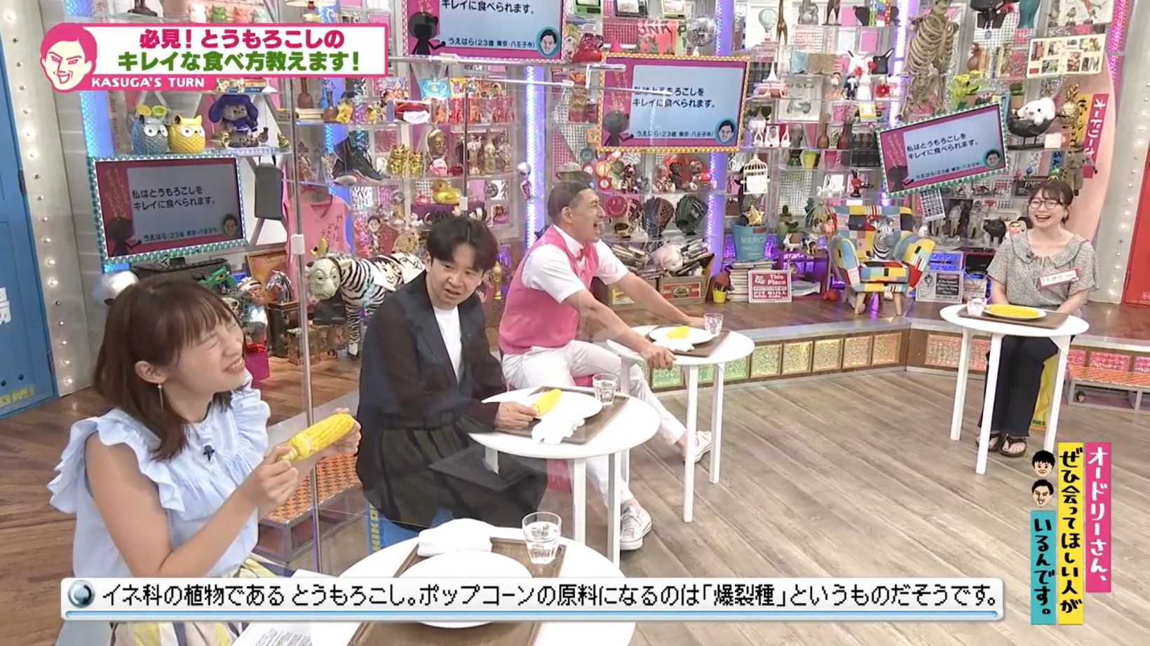 そうこう話すうちに、「とうもろこし、食べたくなってきちゃったな」と春日。そして、スタジオに茹でたとうもろこしが運ばれてきた。