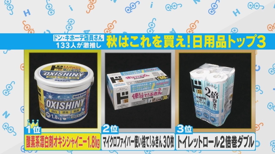 驚安の殿堂「ドン・キホーテ」64店舗の店員さん133人に、この秋に話題になった「激推し日用品」をアンケート調査。「秋はこれを買え!日用品トップ3」を発表します!