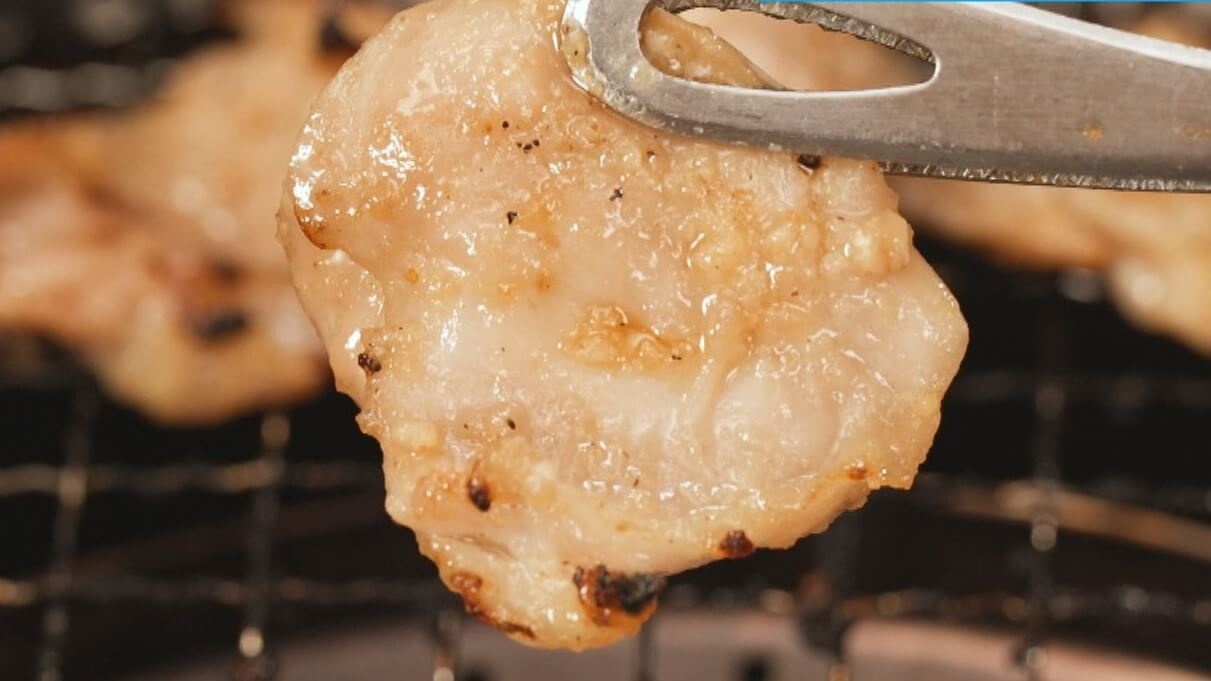 第1位は、ほぼ全員が注文するという「きんぐ塩タン【ポーク】」。焼肉きんぐ 津島店・佐々木啓史店長オススメの焼き方を紹介!まず、こしょう&ごま油がかかっている面を下にして焼きます。少し縮んできて表面に水分が出たら、裏返してサッとあぶります。程よい歯応えで、かむたびにウマみを味わえます!