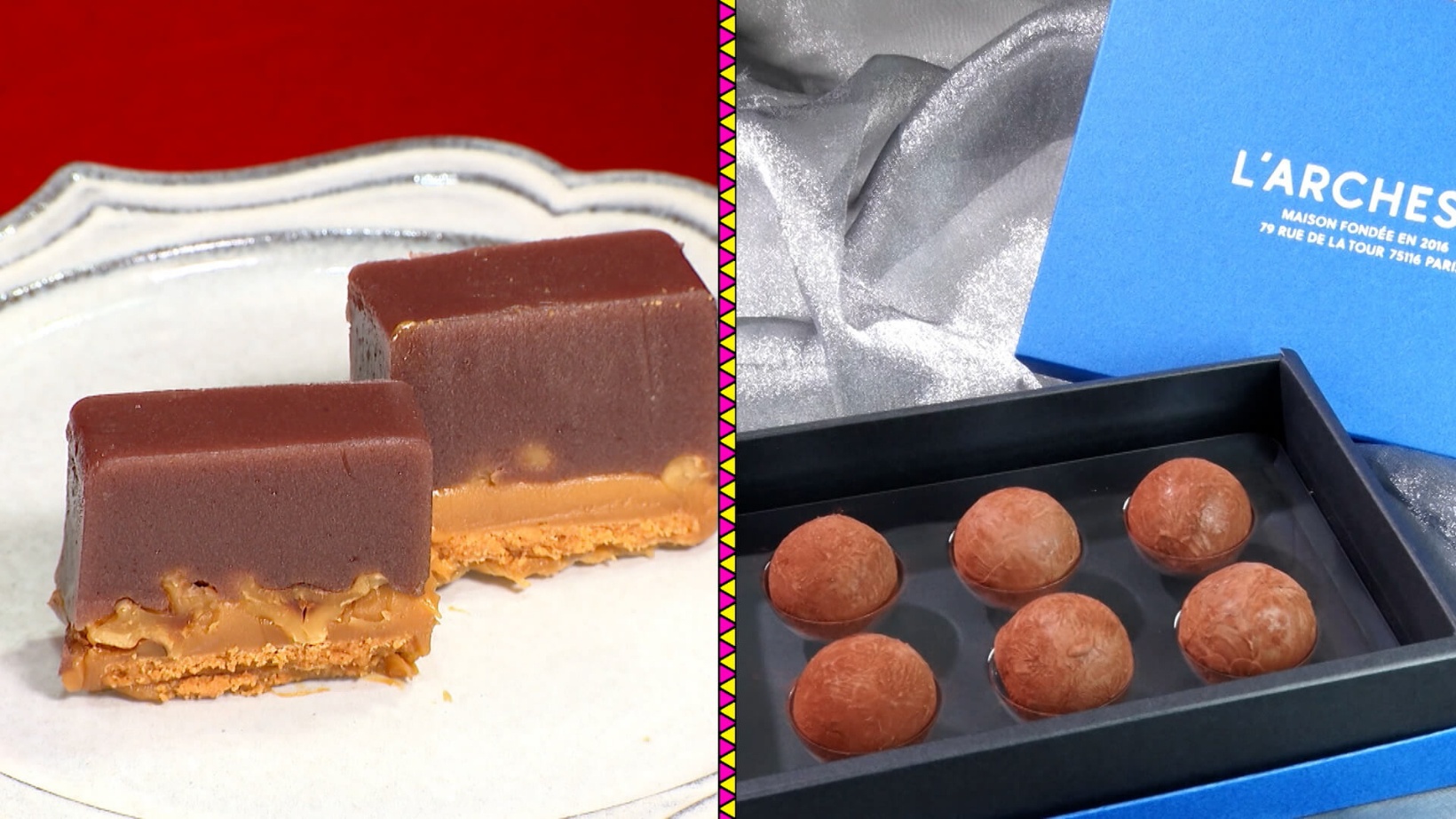 中でも、最も入手困難なお店が「ラルケスト」。伊藤良明シェフが2016年にフランス・パリに立ち上げたレストランで、オープンから5か月でミシュラン一つ星を獲得した超人気店です。「ユニックジャルダン」は、ラルケストのコース料理のデザートとして出てくるチョコ。外側にコーティングしたチョコは、なんと1mmの薄さです!