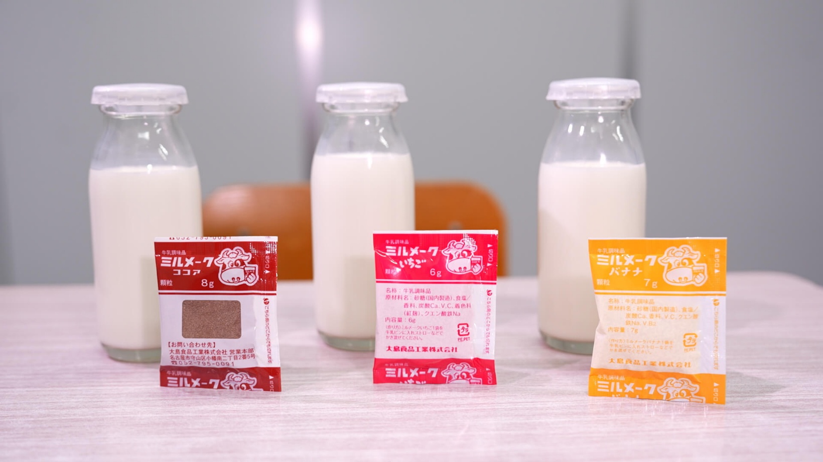 ミルメークは名古屋市守山区にある「大島食品工業」で誕生した商品。現在も全国のミルメークがここで製造されています。その数、年間約3800万食!今ではコーヒー味だけでなく、いちご味やバナナ味も。