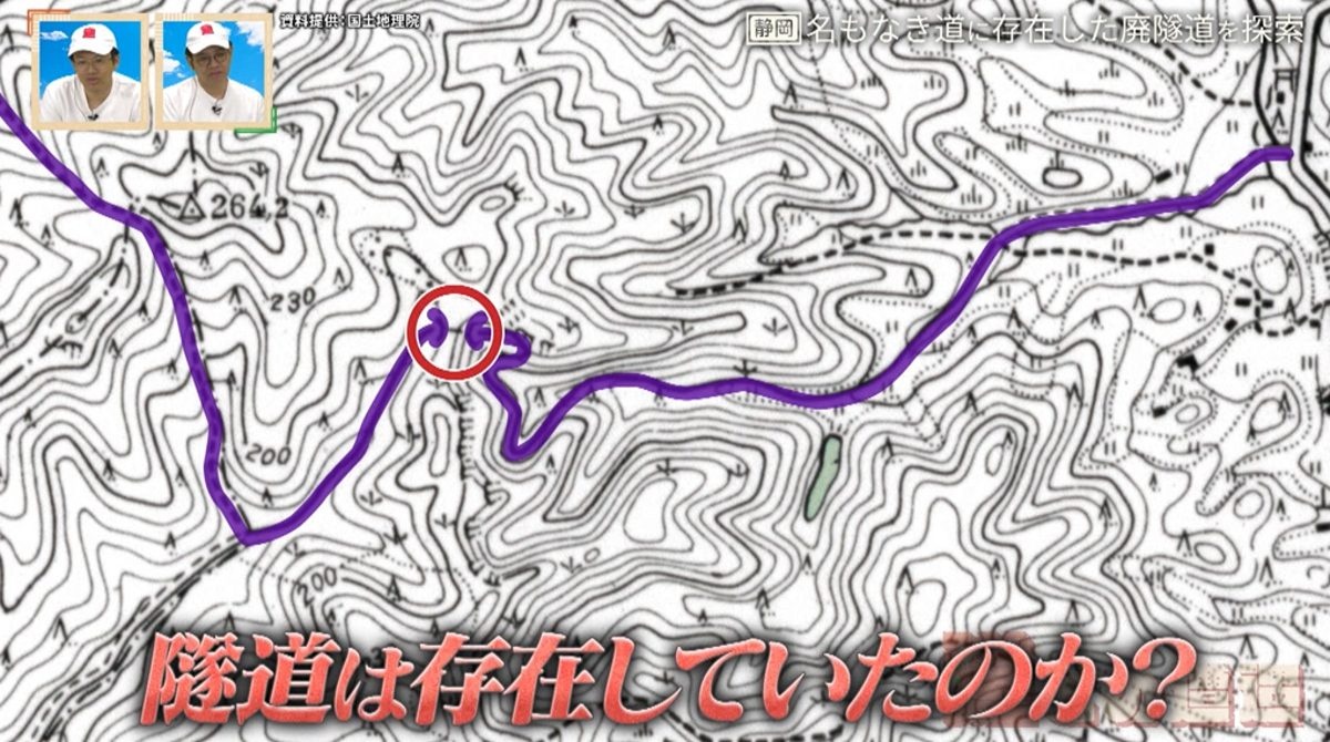 古い地形図を眺めるのが好きな道マニアが、昭和31年測量の地形図から名もなき道に記された隧道を発見したと言い、調査することに。