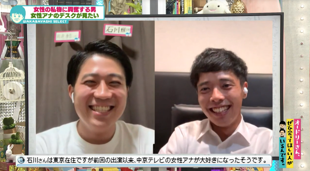 2021年1月11日の放送分は、『磯貝アナ、前回は石川のために化粧ポーチを出してくれてありがとうございました。石川がまた変なことを言い出したので聞いてあげてくれませんか?岡﨑兼吾(28歳東京・練馬区)』というクチコミです。前回に引き続き、お馴染みの変態ぜひらー・石川輝さんが出演し、女性アナのデスクをリモートで分析!アナウンス部に潜入した春日が、中京テレビアナウンサーの実態を調査します。