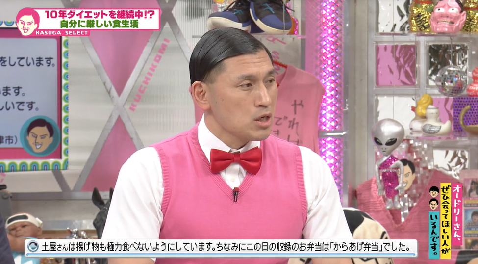 ボディビルのために身体を鍛えている春日は、土屋さんの食生活について気になるようです。