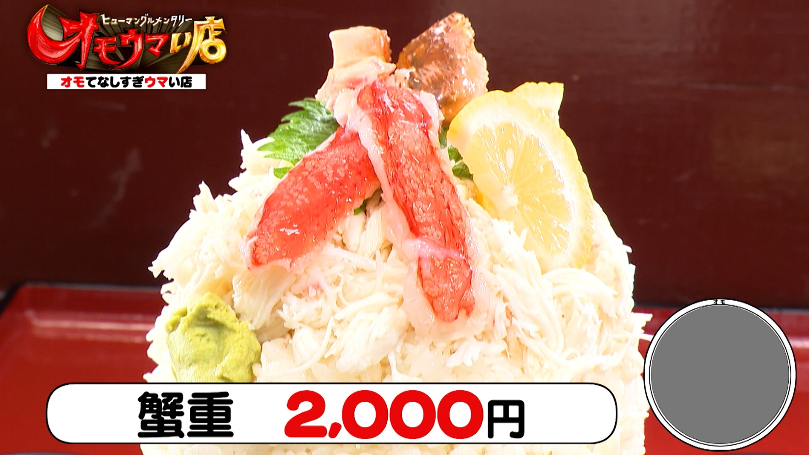 ボリューム満点の「蟹重(2,000円)」やカニ爪付きの「カニ盛り(1,000円)」という贅沢なメニューも、リーズナブルな価格で味わえます。