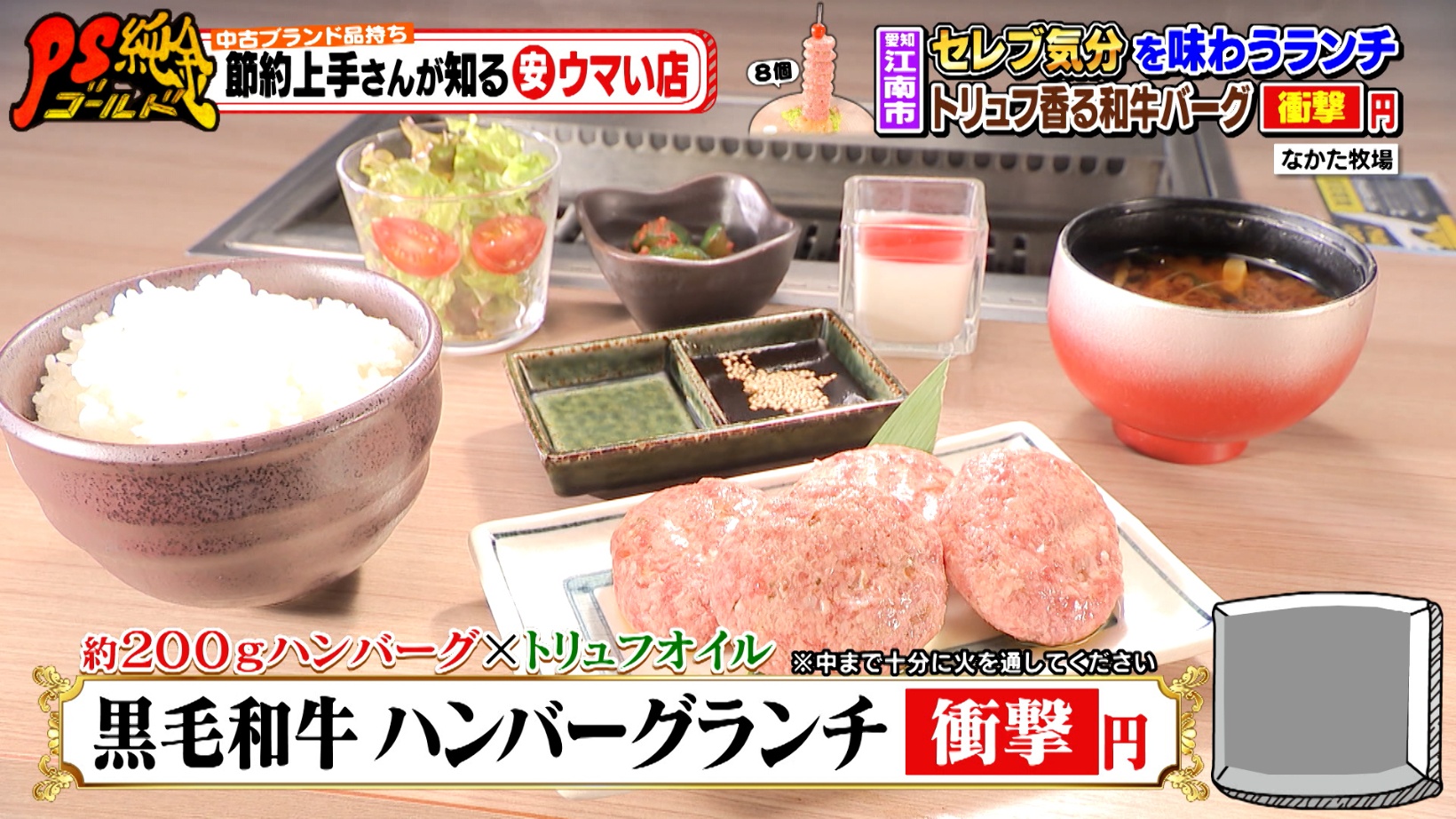 節約上手さんが通う「なかた牧場」衝撃の黒毛和牛ハンバーグ&「旬香亭 ふじ」2段重ね海鮮丼『PS純金(ゴールド)』