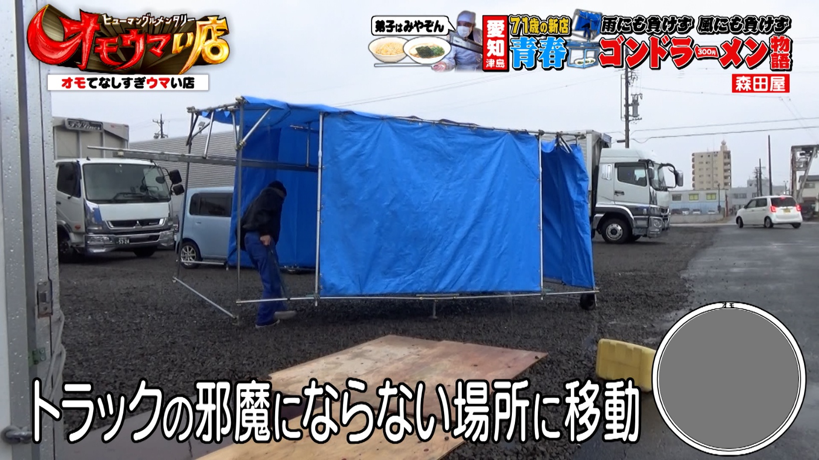 愛知県津島市「森田屋」ゴンドラで配膳!ブルーシート店舗で食べる絶品ラーメン&25年ぶり愛弟子との再会『オモウマい店』