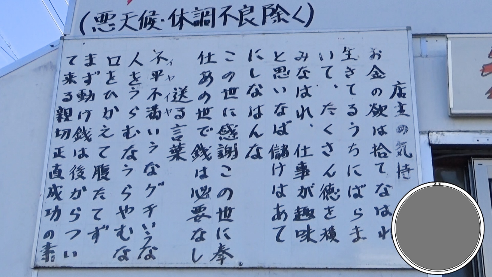 店には店主のメッセージが掲げられ、店主は「お金だけじゃない。行動でばらまいて、みんなに喜んでもらえれば」と話します。「お墓にお金持ってったってしょうがない。生きてるうちにみんなに喜んでもらえる方法がこれ(ラーメン店)だった」と語る店主の想いに、スタジオメンバーは心打たれるのでした。