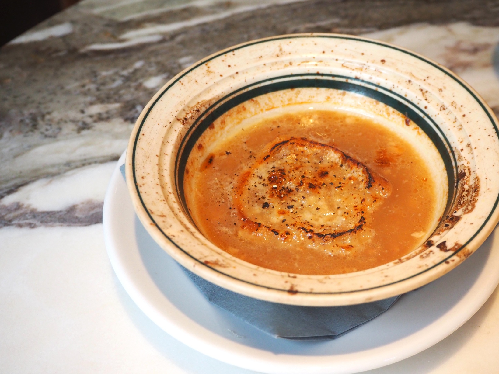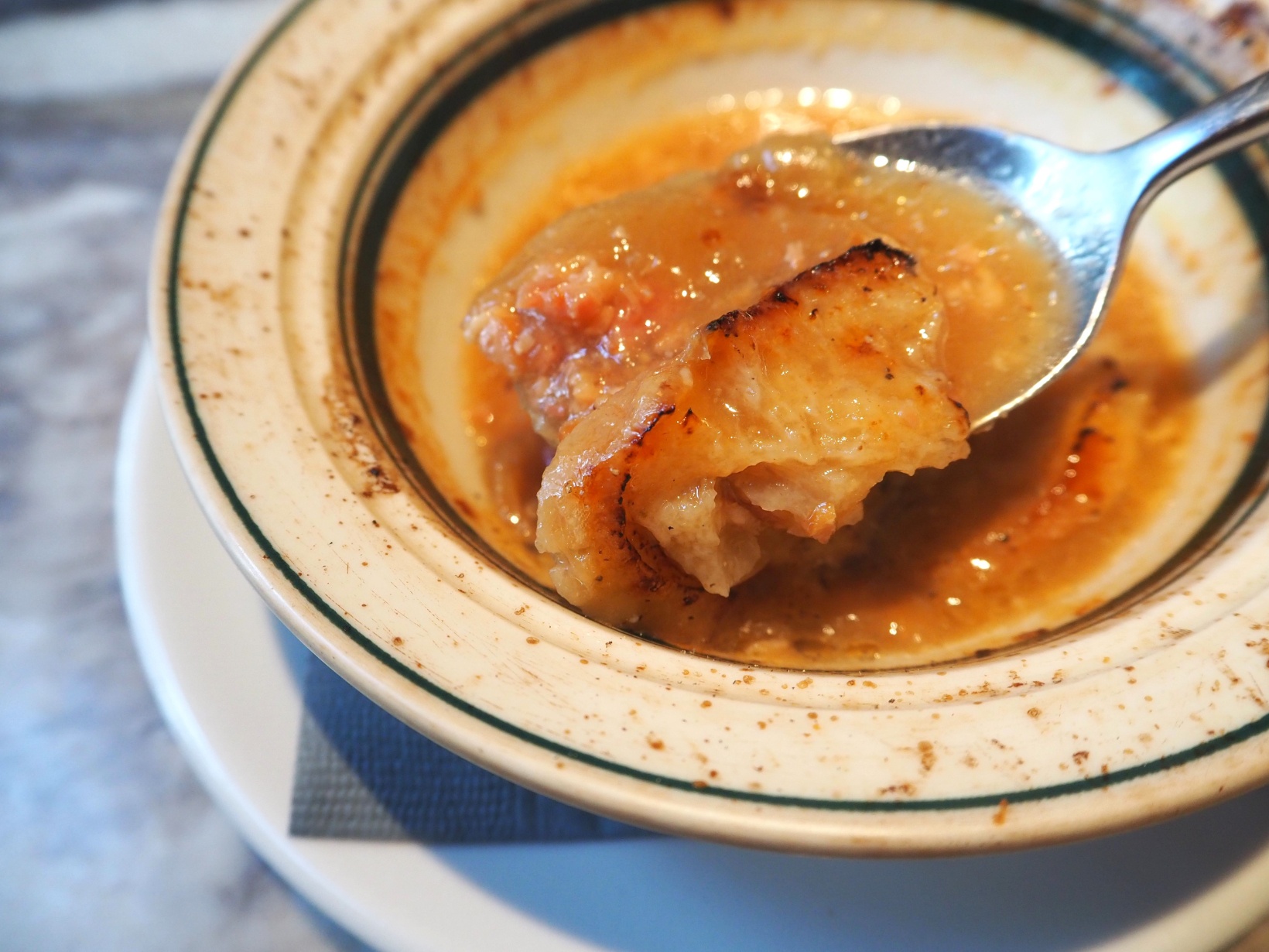 煮込まれたオニオンは、スプーンで簡単にほぐせるほど柔らか。オニオンの旨みと甘みが凝縮し、小さくカットされたベーコンの食感がアクセントとなったスープ。朝から味わうには、贅沢すぎる1杯でした。