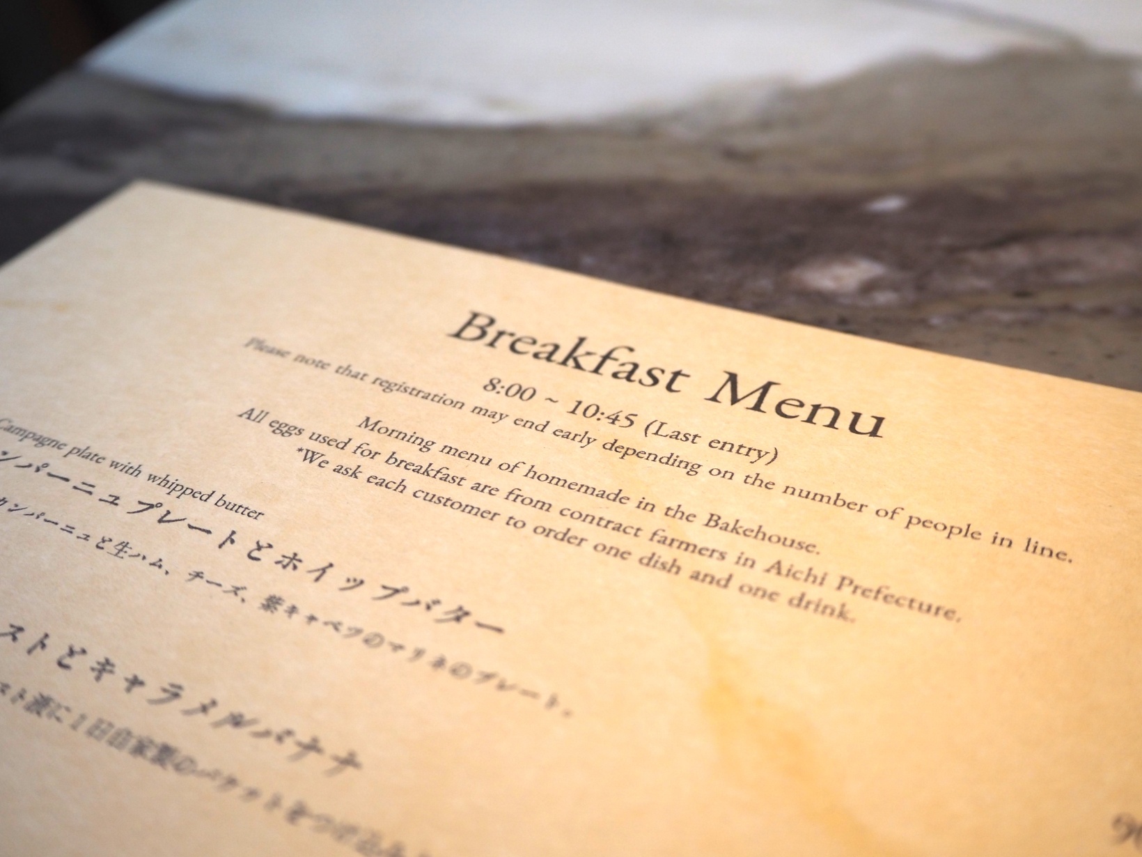 ビジネス街という立地から、海外からのお客さんも多いという『IEN Bake house』。海外から来た人も利用しやすいよう、英語表記のメニュー表を用意する“おもてなし”も印象的でした。