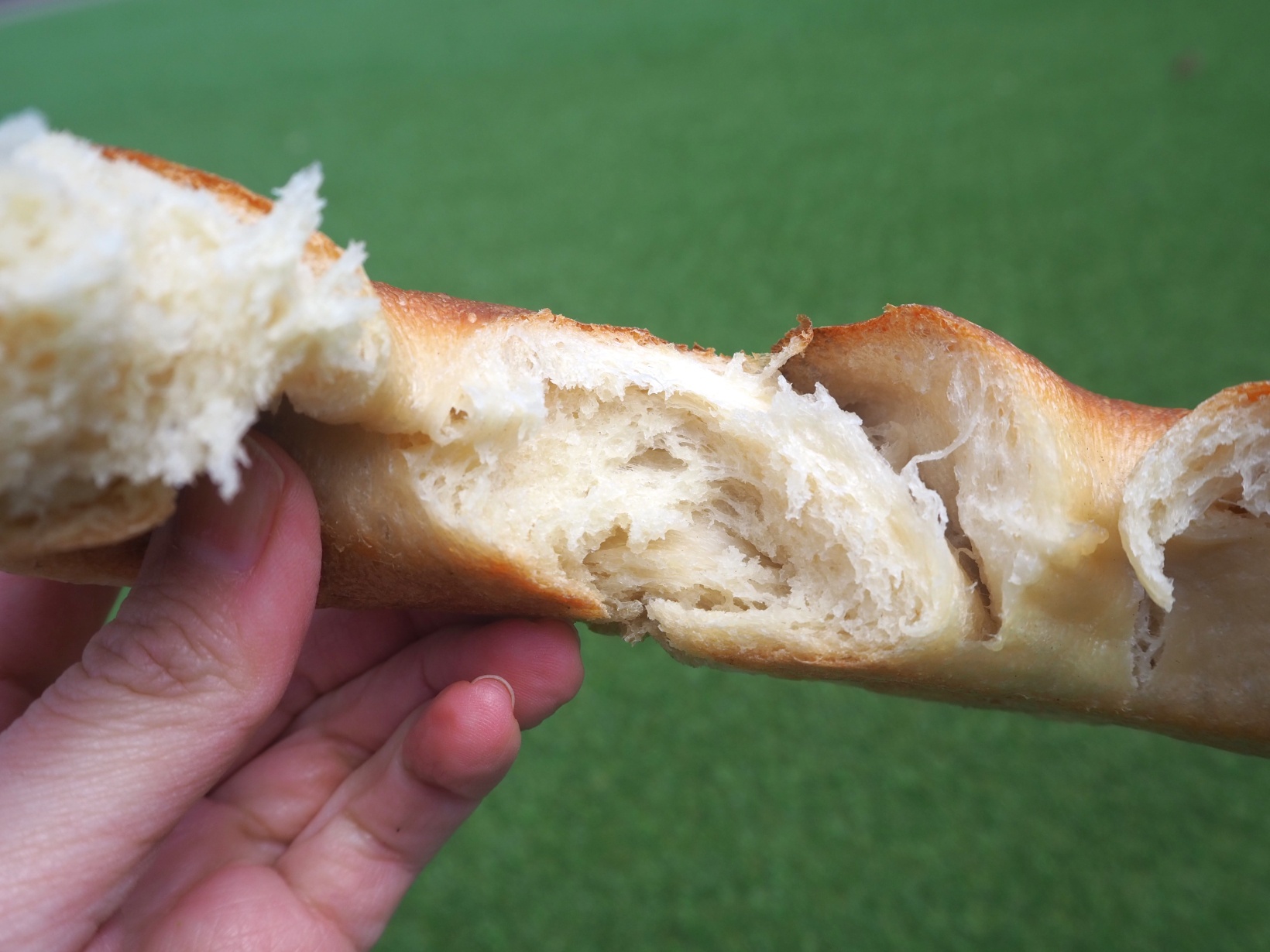 高温の余熱で焼くことで、表面にはしっかり火が入り、カリカリとした食感に。また、パンのなかに水分を閉じ込めることで、中はモチモチとした口当たりに仕上がります。