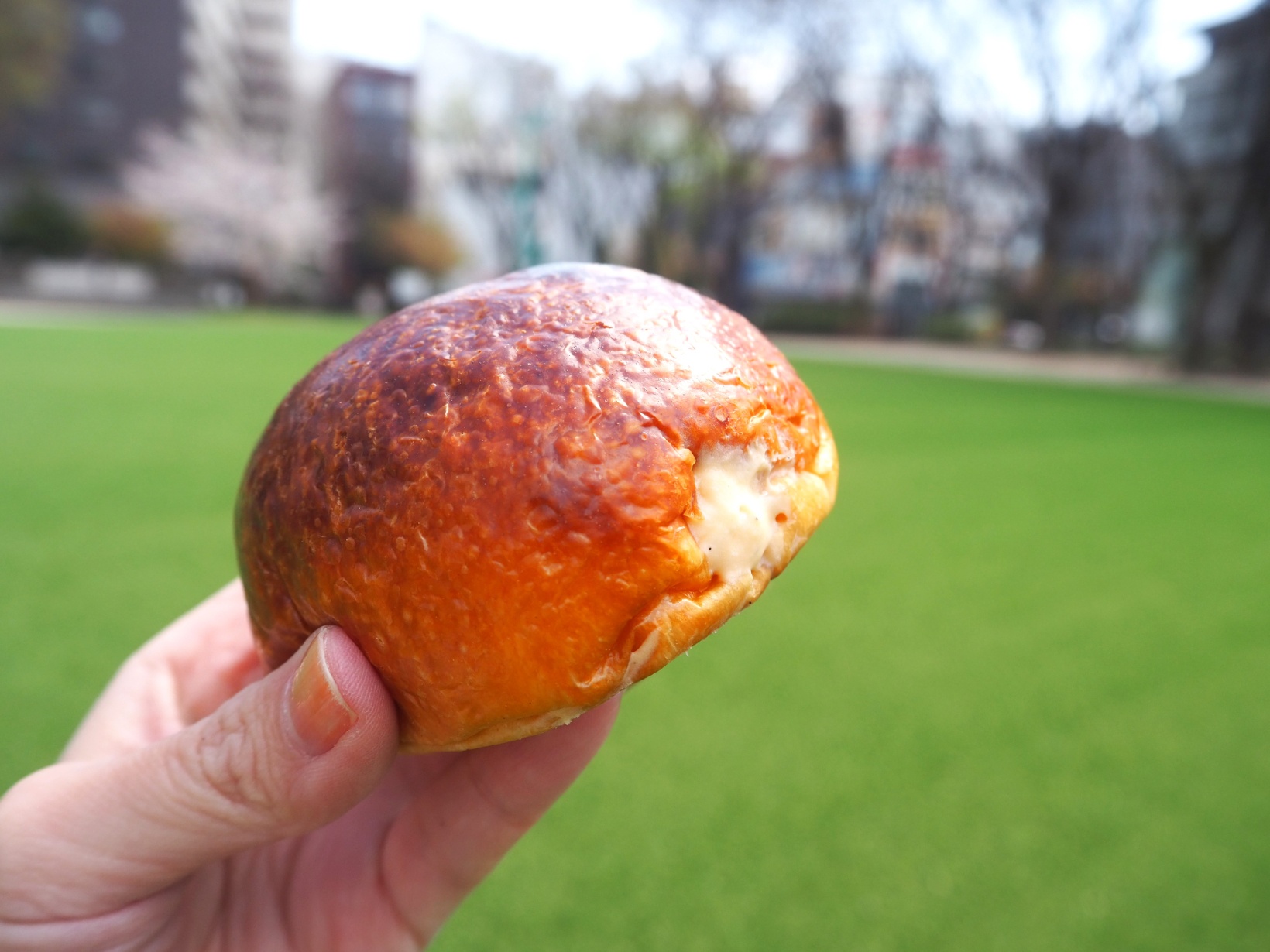 パンを片手に公園ブランチ