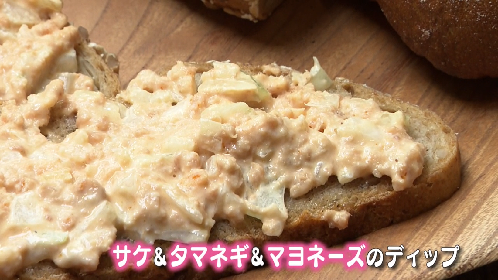 雑穀がふんだんに入った「メアコーン ハーフ」(380円)には、サケ・タマネギ・マヨネーズをディップ。しっとりとしたパンとタマネギのシャキシャキとした食感が相性抜群です。