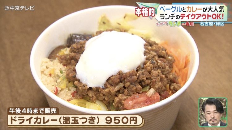 「コナモーレ」は、カレーと30種類のベーグルが人気のお店です。取材当日はイートインが休止中だったため、テイクアウトでいただきました。