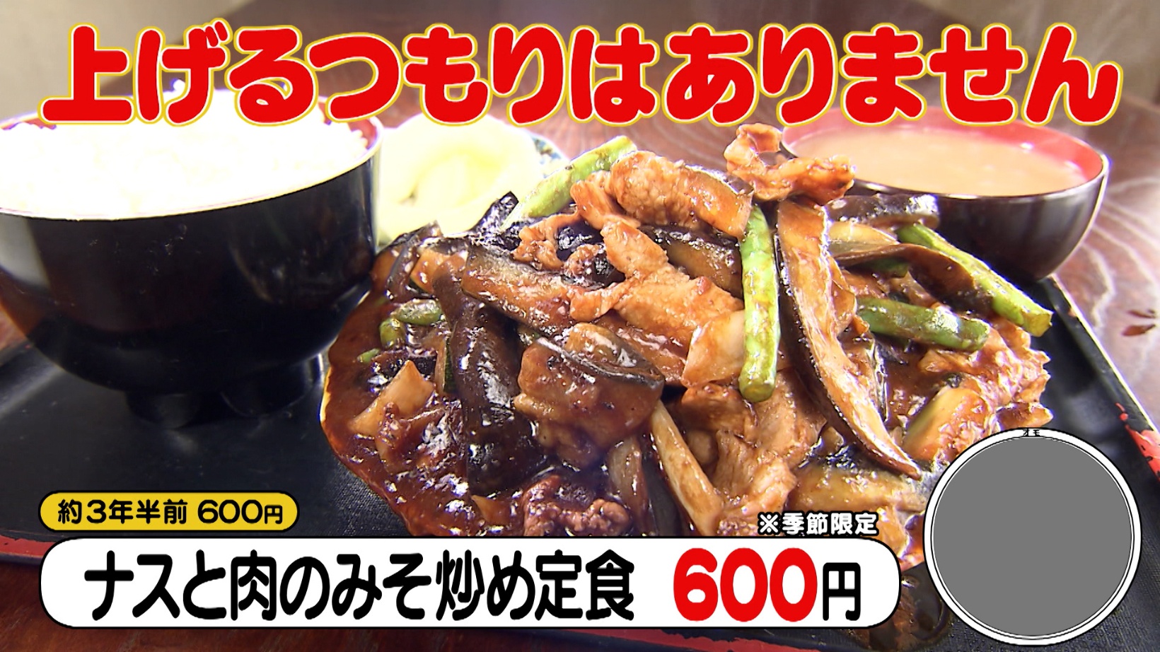 今回、3年8カ月ぶりに店を再訪。「野菜炒め定食」は500円、「ナスと肉のみそ炒め定食」は600円と、当時と変わらぬ値段で提供されていました。豪快で爆弾と呼ばれていたという店主は「お店を始めた時と同じ値段。これからも上げるつもりはありません」と話します。物価が上がっても「値段上げて儲けてもしょうがない」と笑いながら、値上げはしないと断言するのでした。