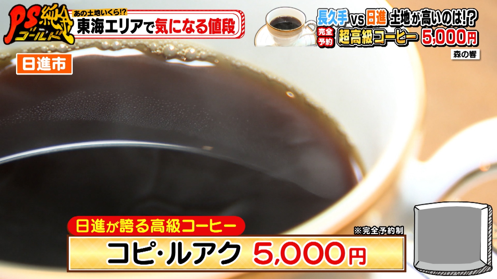 まず日進市の高級住宅地「竹の山」へ向かうと、超高級コーヒー店『森の響』で通称❝バンブーセレブ❞たちが優雅な時間を過ごしています。こちらで味わえる、ジャコウネコの体内を通った希少なコーヒー豆を使う「コピ・ルアク」はなんと1杯5,000円!