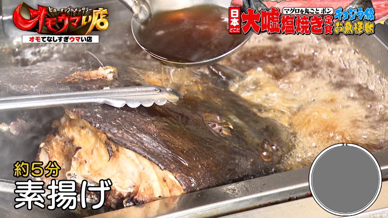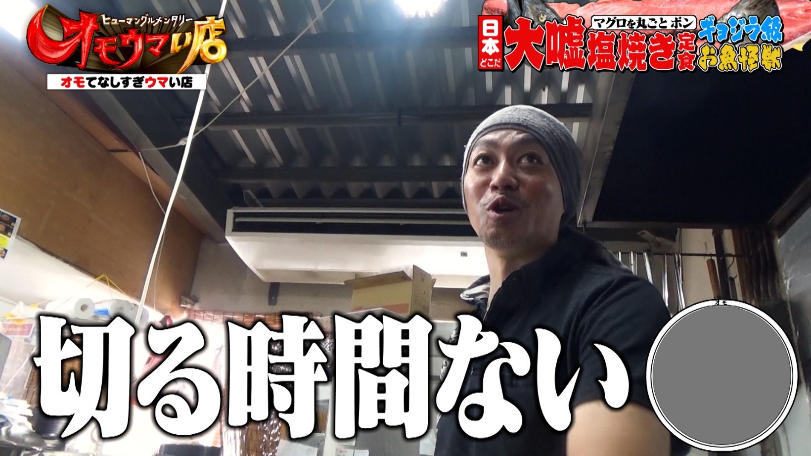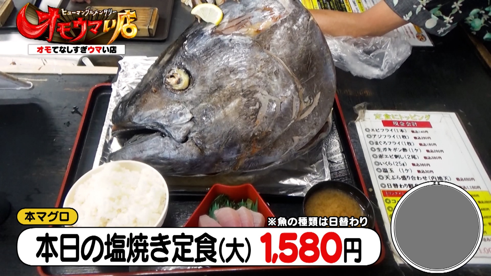「本日の塩焼き定食(大・1,580円)」を注文すると、運ばれてきたのはなんと巨大な本マグロの頭!普通の塩焼きを想像していたお客さんは思わず「無理でしょ!?」「ダマされた」と驚きます。