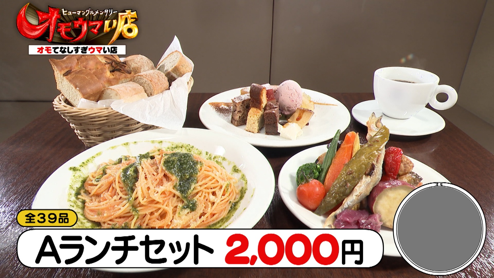 お皿にたっぷりと盛られた全20品の前菜に加え、バジリコソースがけのトマトソーススパゲティ、自家製パン5種、さらには全12種のデザートの盛り合わせまで楽しめる「Aランチセット(2,000円)」。食後にはコーヒーや紅茶などのドリンクも付くため、全39品を味わえるボリュームながら、リーズナブルなお値段です。スパゲッティのソースは、トマトベース、オイルベース、クリームベースの3種から選べるうえ、パンはお持ち帰りOK。