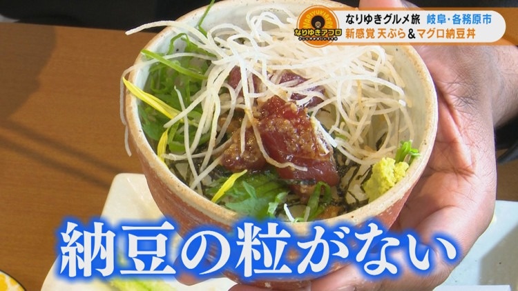 「入ってないです…」とご主人。また外れちゃいました…。このマグロ納豆丼は、納豆をドレッシング状にしたものを上からかけているそう。ヘルシーなこともあって女性に人気だそうですよ。