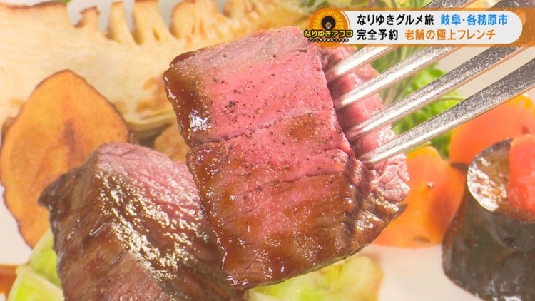 まず出会ったのは、2匹のかわいいワンちゃん連れのママさん。各務原へお嫁に来て30年のママさんに、この町で一番美味しいものを聞いてみます。その答えは、『セザール』でいただける「牛フィレ肉のステーキ』。知る人ぞ知る老舗のフレンチレストランで、結婚する前からご主人が利用しているお店なんだとか。いまも結婚記念日など特別な日には出かけているそうです。