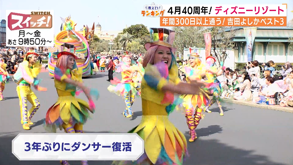 そこで、年間300日以上もパークに通うディズニーファンの吉田よしかさんに、40周年アニバーサリーイベントの魅力をランキング形式で伺いました。 東海テレビ『スイッチ!』4月24日放送から