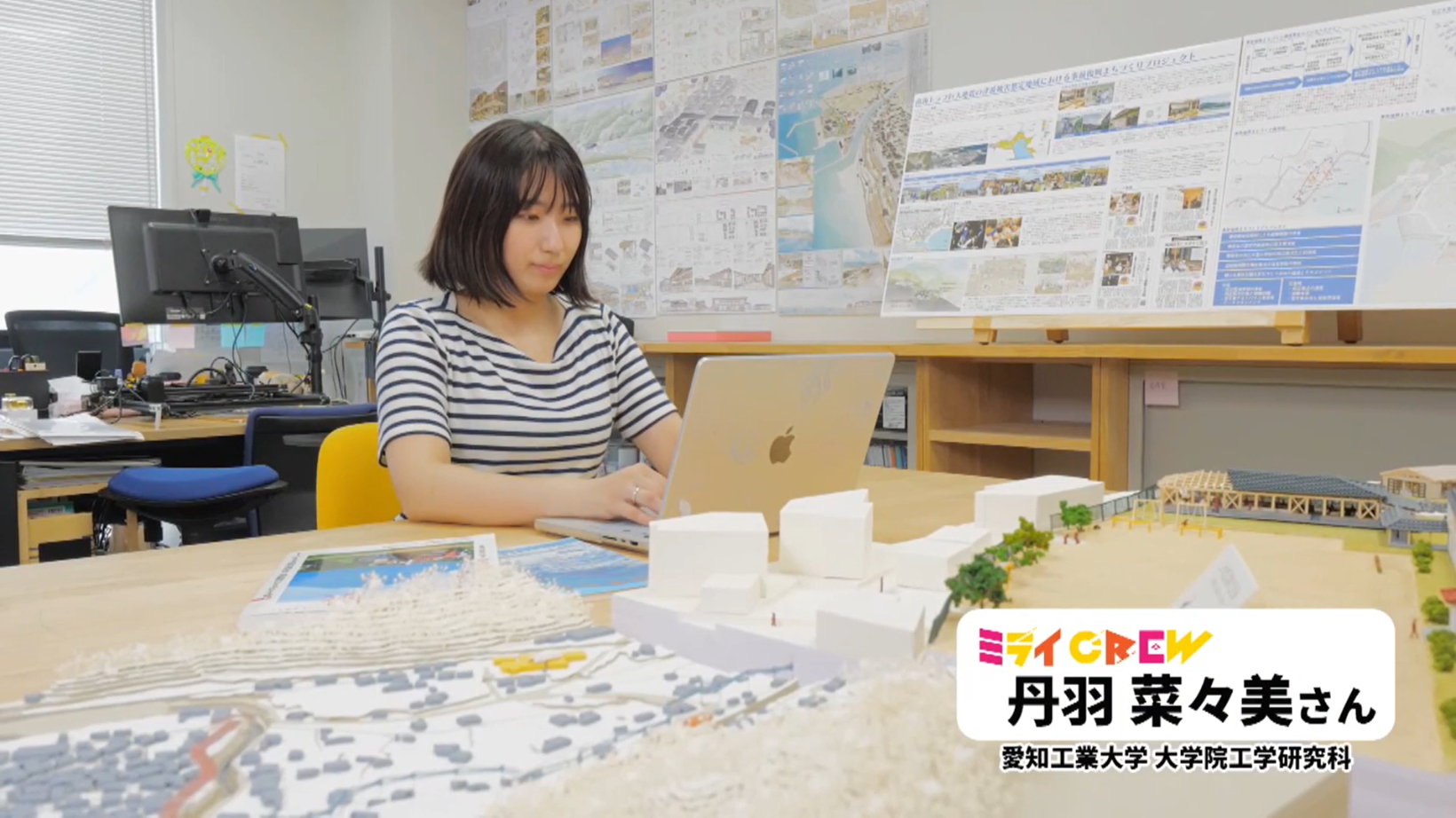 愛知工業大学では、災害に強いまちづくりを研究する学生たちがいました。その一人が、愛知工業大学の丹羽 菜々美さん。三重県の三木里地区で、「事前復興まちづくり」のプロジェクトリーダーとして活動に励んでいます。