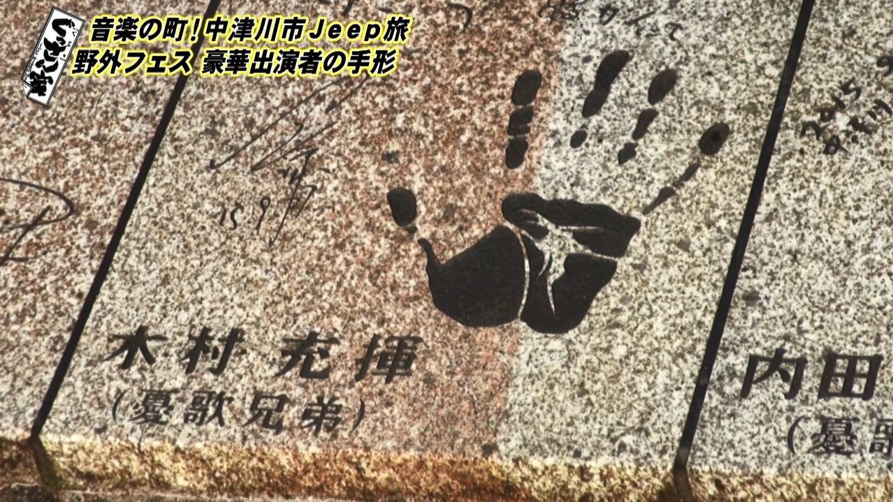 さらに少し離れた場所でも同じオブジェがあるということで見に行くと…こちらには吉川晃司さんや藤井フミヤさんらの手形が!ぐっさんが大好きな憂歌団の内田勘太郎さん、木村充揮さんの手形も見つけ大喜びです。
