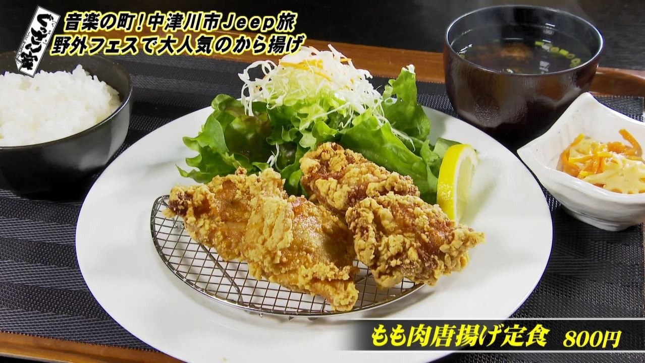 ぐっさんが注文したのは『もも肉唐揚げ定食』(800円)。フェス会場で長蛇の列ができ、2日間で1500食を売り上げたという大人気の唐揚げを定食でいただきます。