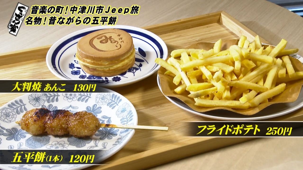お店には五平餅以外にも様々な軽食メニューがあり、目移りしたぐっさんは名物の『五平餅』(1本120円)に加え『大判焼 あんこ』(130円)と『フライドポテト』(250円)を注文!