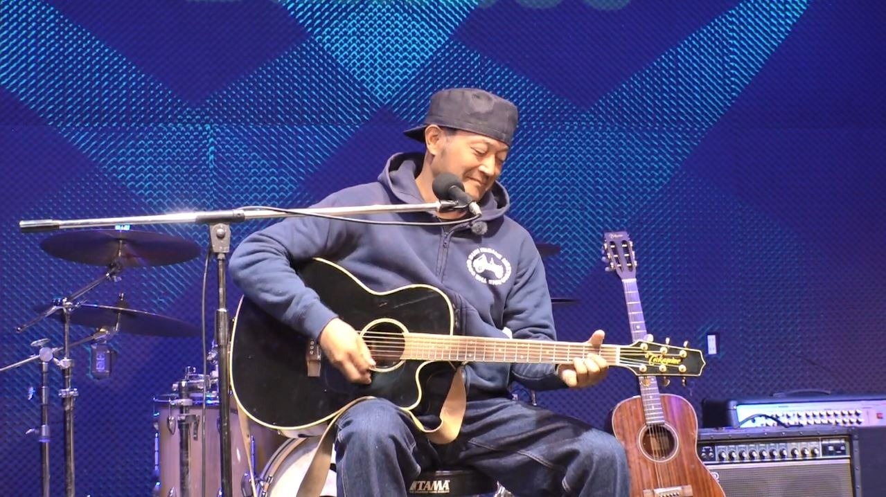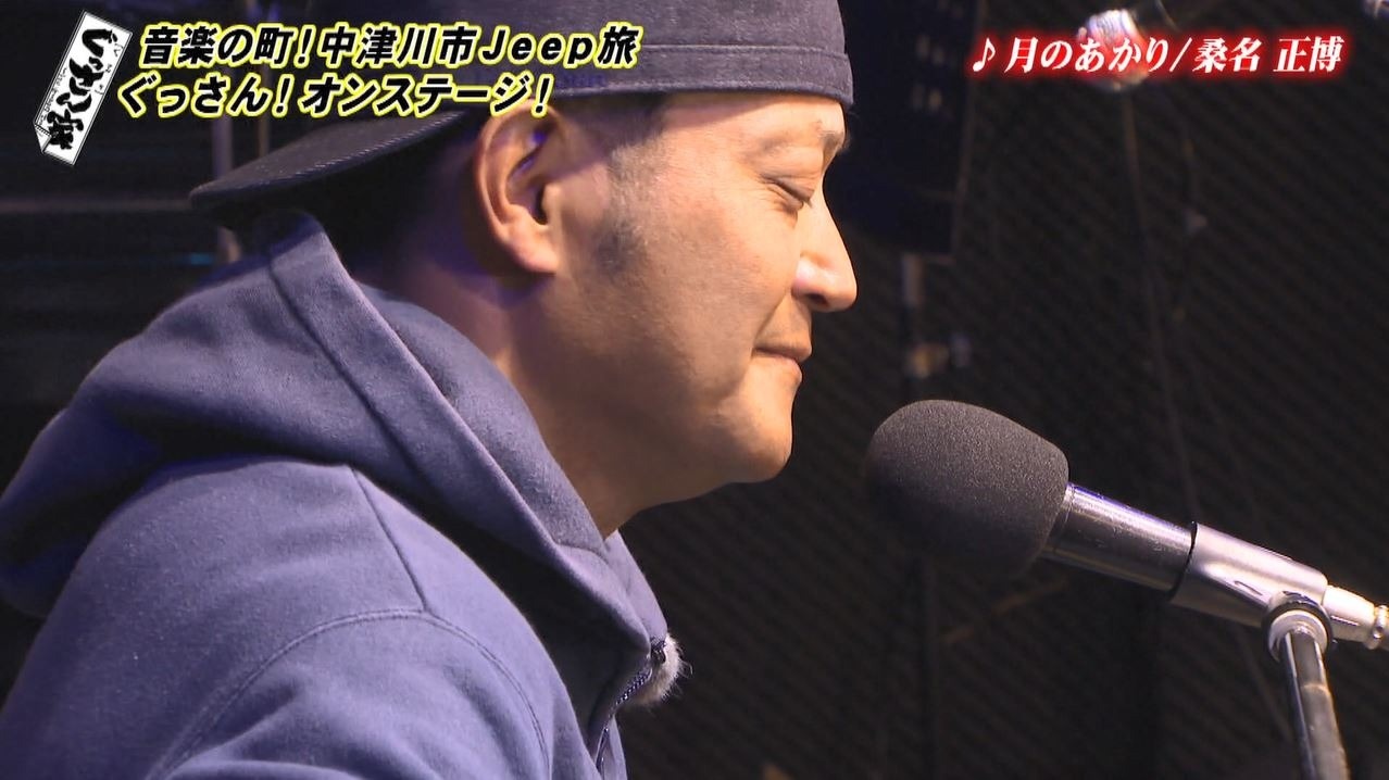 そしていよいよ、ぐっさんのオンステージ!アコースティックギターの音色から始まり、歌ったのは桑名正博さんの『月のあかり』。
