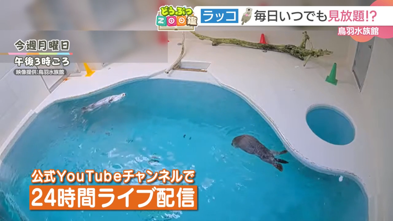 鳥羽水族館の公式YouTubeチャンネルでは、ラッコ水槽の24時間ライブ配信を実施。2頭の姿をいつでも、どこでも見ることができます。