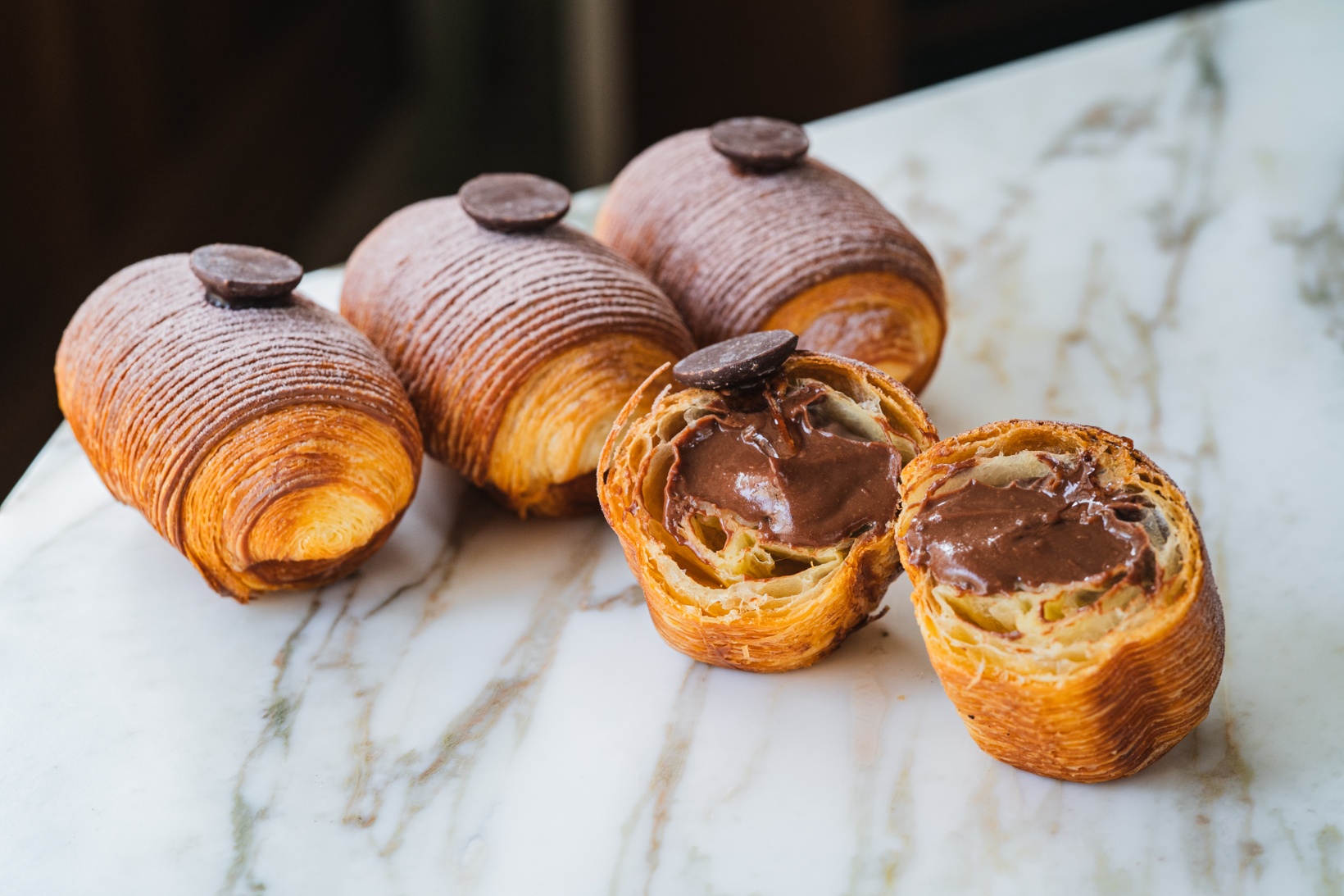 名古屋市の人気ショコラトリー『CHOCOLATERIE TAKASU』が手掛けるマダガスカル産カカオ66%のチョコレートと、愛知牧場の牛乳を使用した自家製カスタードを、ザクザクのデニッシュ生地と合わせたひと品。取材時には、このシュークリームをお目当てに、開店30分前から並ぶ人の姿もありました。