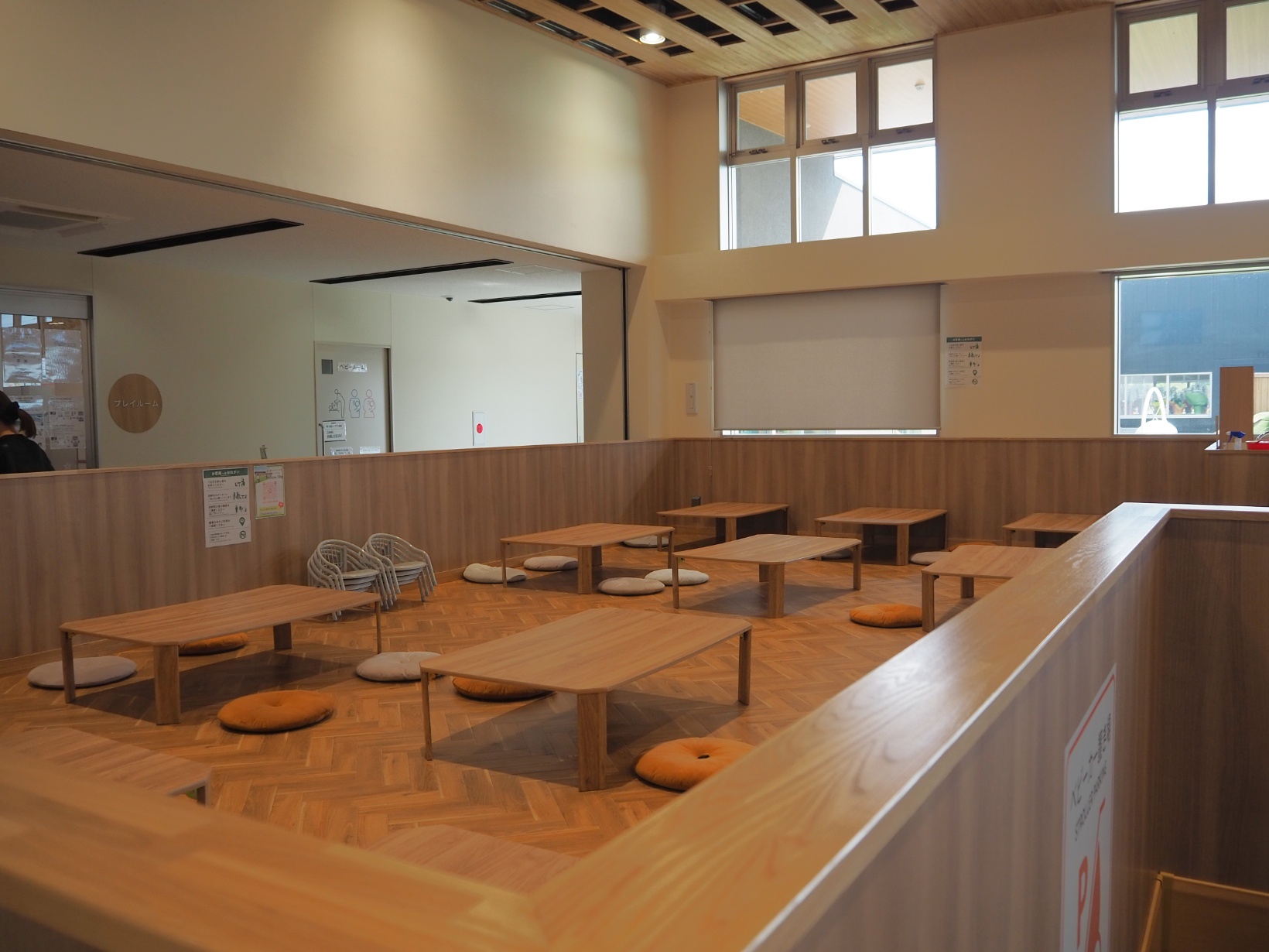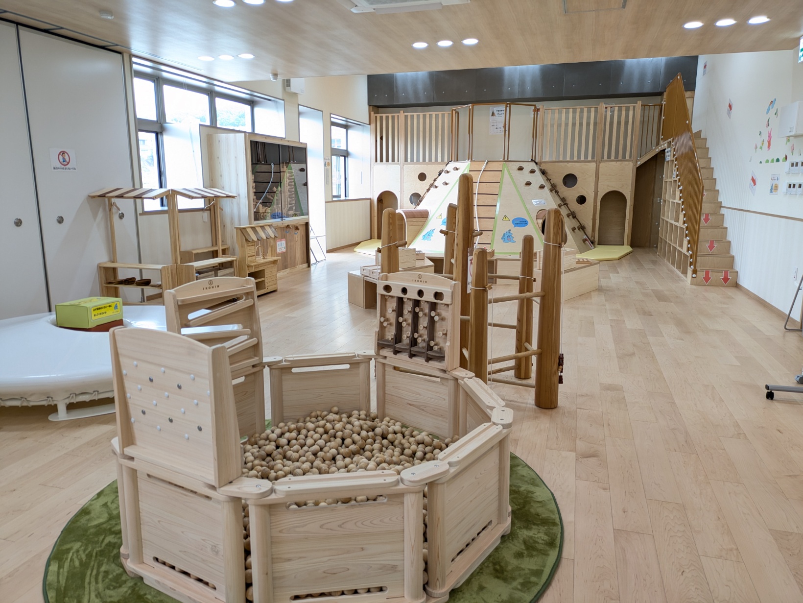 多くの人が賑わうなか、ひとつの柱となっているのが、定員制の「プレイルーム」。木の香りが漂う癒しの空間で、木のボールプールやアスレチックなどで大人も子どもの遊ぶことができます。