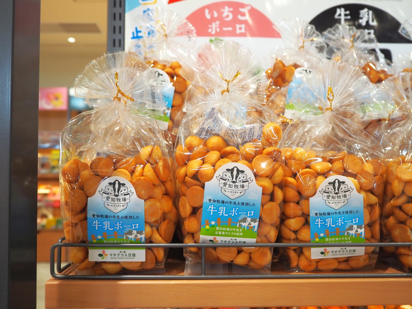 注目商品は、『愛知牧場』の牛乳を使用した「牛乳ボーロ」(448円)。日本でも数少ない落とし焼き製法で作られており、“サクサク”、“ホロホロ”とした昔懐かしい食感が魅力です。同施設限定のの商品で、いちご、牛乳、カフェオレの3種類のフレーバーを展開しています。