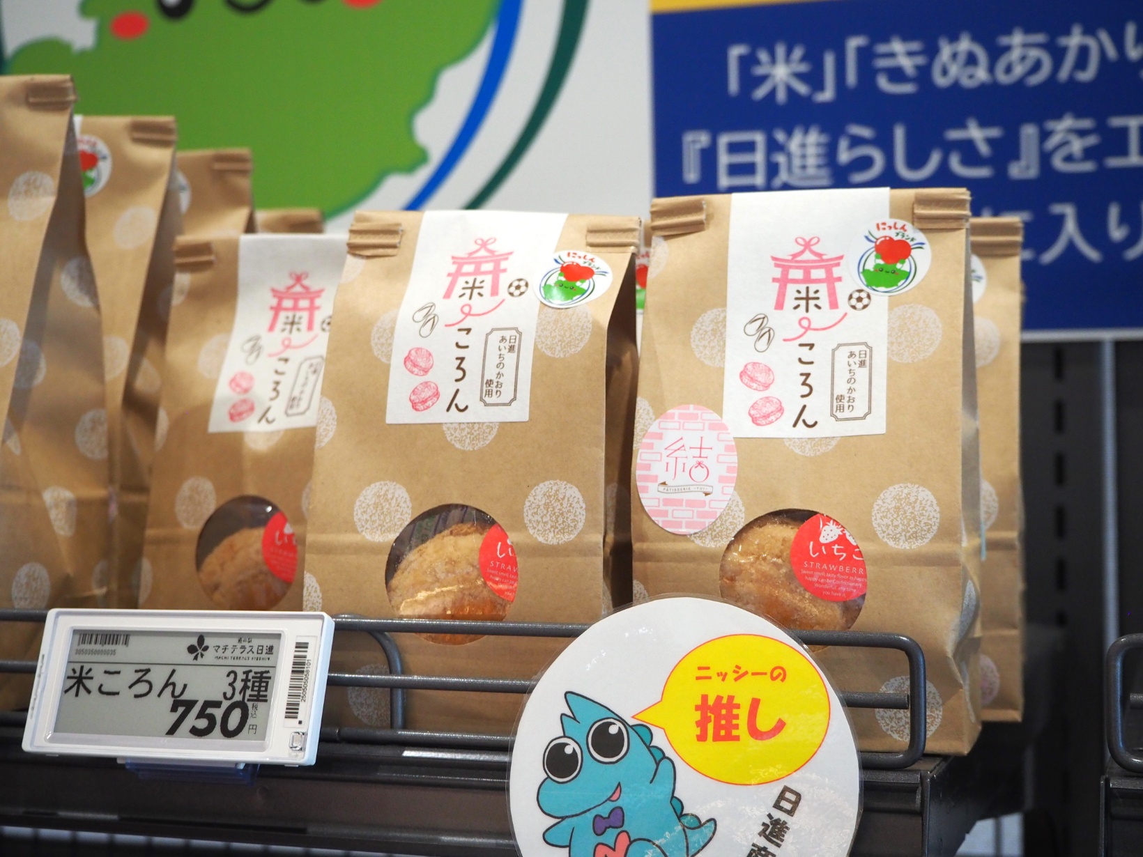 そして、忘れてならないのが、「にっしんブランド」の商品たち。日進ブランドとは、愛知県が日進市の地域資源として認定している「米(米粉)」・「きぬあかり(小麦)」・「プチヴェール(野菜・粉末可)」 を原材料に使用した商品を指しており、さまざまな店舗がにっしんブランドの商品を展開しています。
