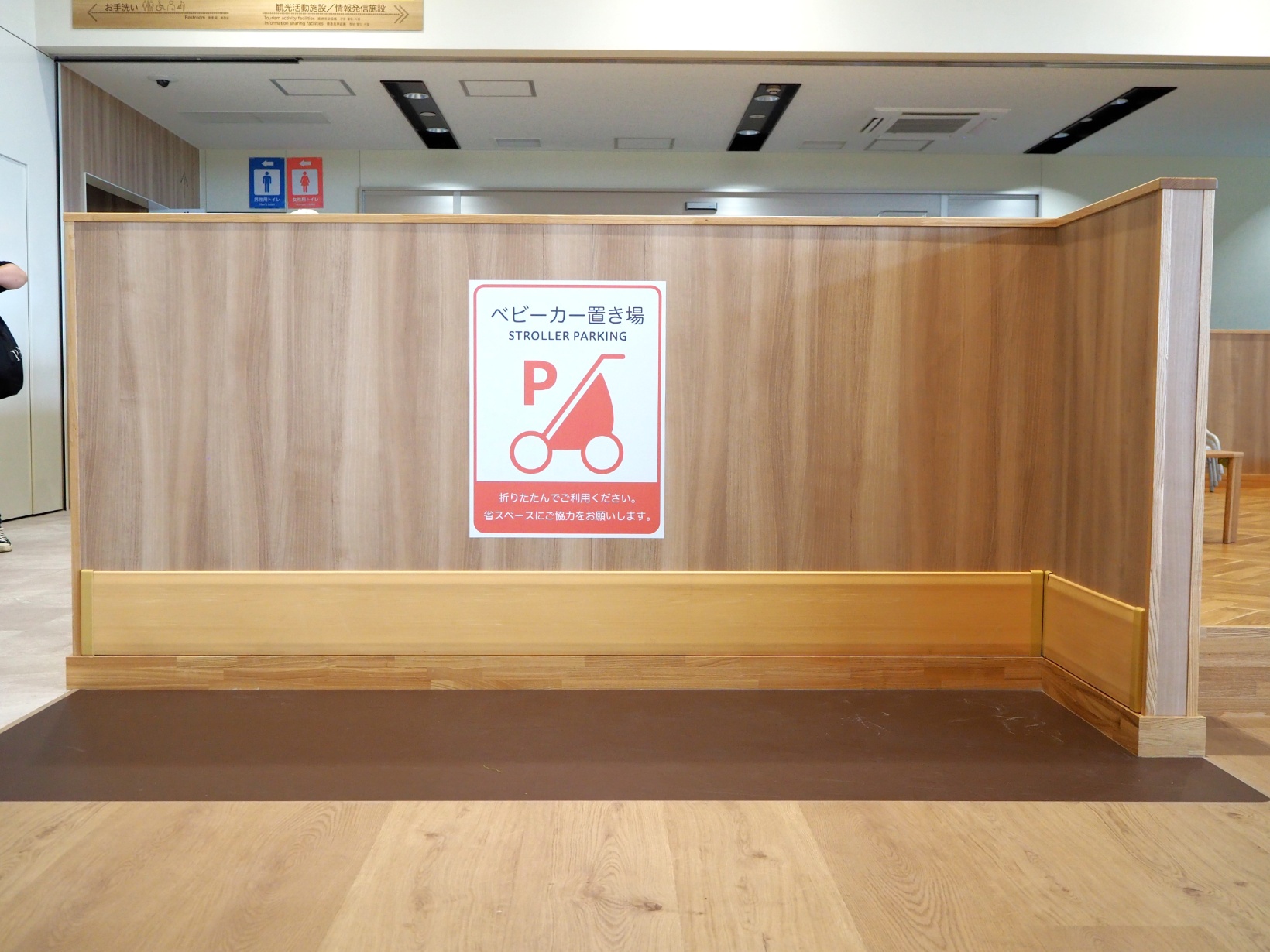 近くにはベビーカー置き場も設けられ、小さなお子さん連れでも、利用しやすい環境が整えられていました。
