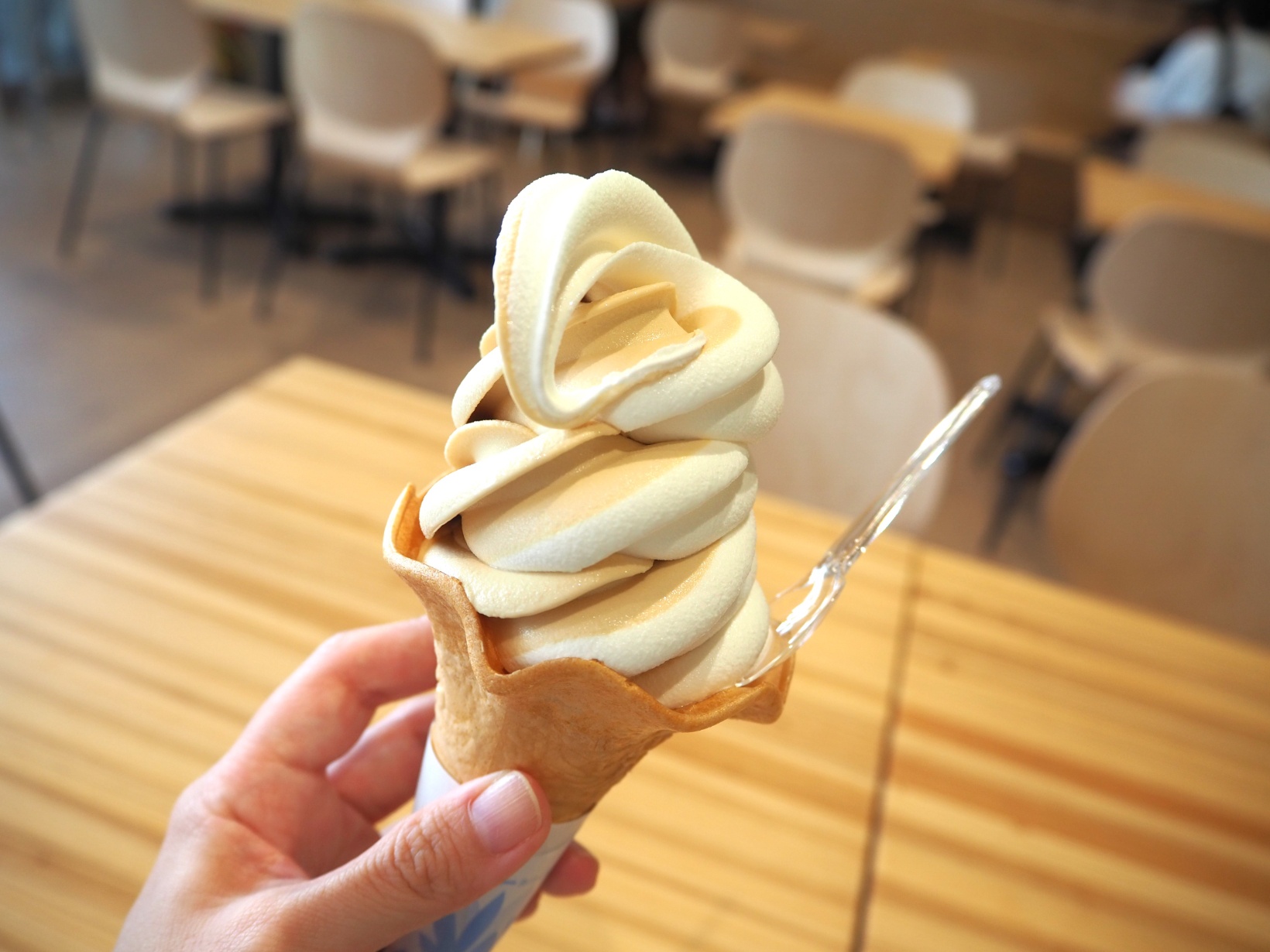 常滑牛乳と味噌の味が楽しめる「ミックスソフト」(400円)は、まだまだ続く暑さにぴったり。牛乳×味噌が織り成す、“あまじょっぱさ”はクセになる味わいです。