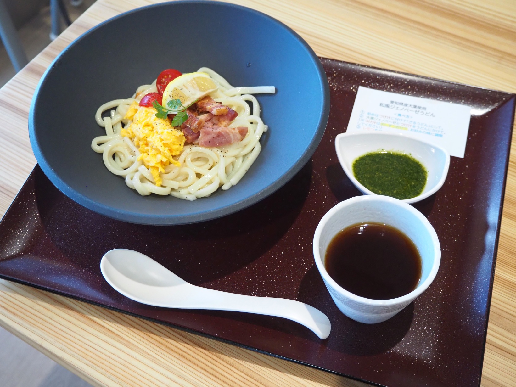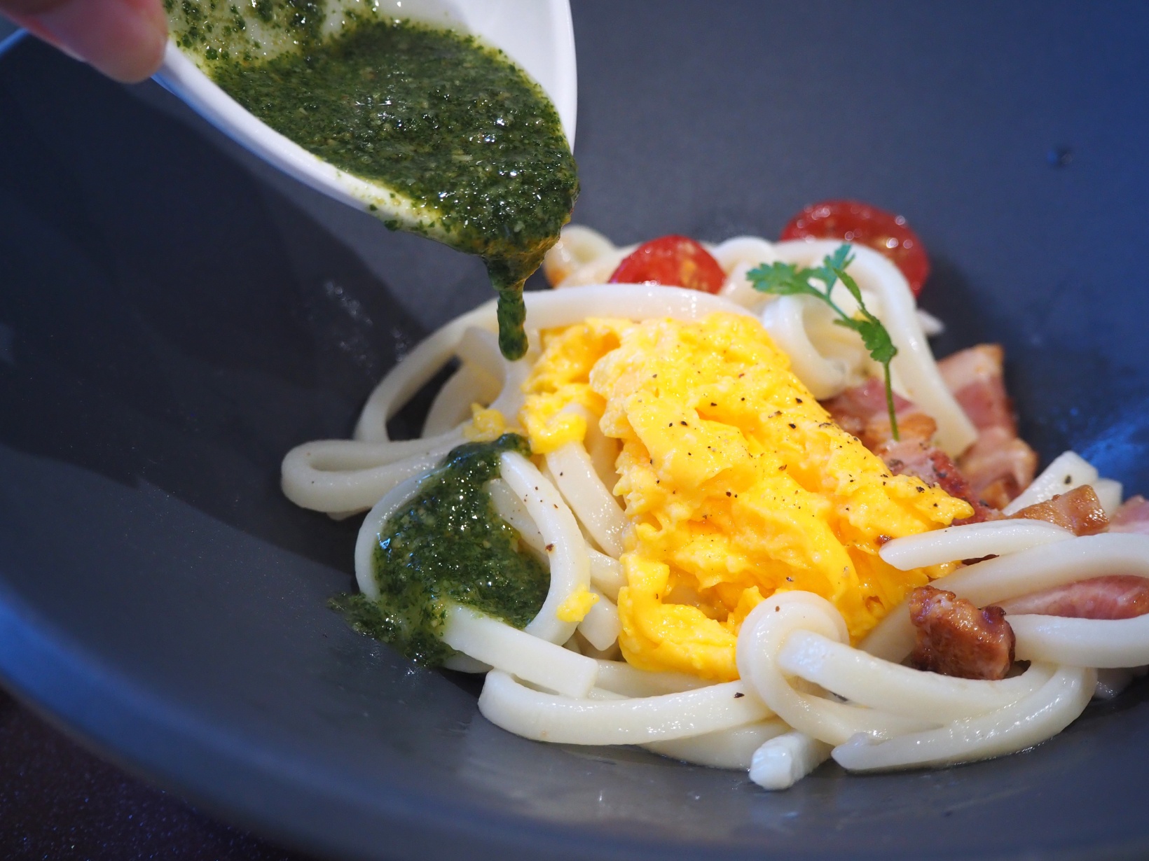 「和風ジェノベーゼうどん」(1,200円)は、3つの食べ方が楽しめる、ちょっぴりユニークなメニュー。