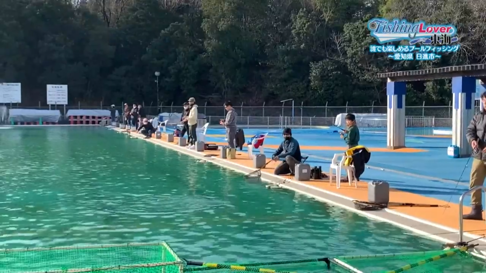 『日進市総合運動公園』の屋外プールでは、冬場限定でプールフィッシングを実施。プール型管理釣り場として、初心者からベテランまで幅広い層から人気を集めています。